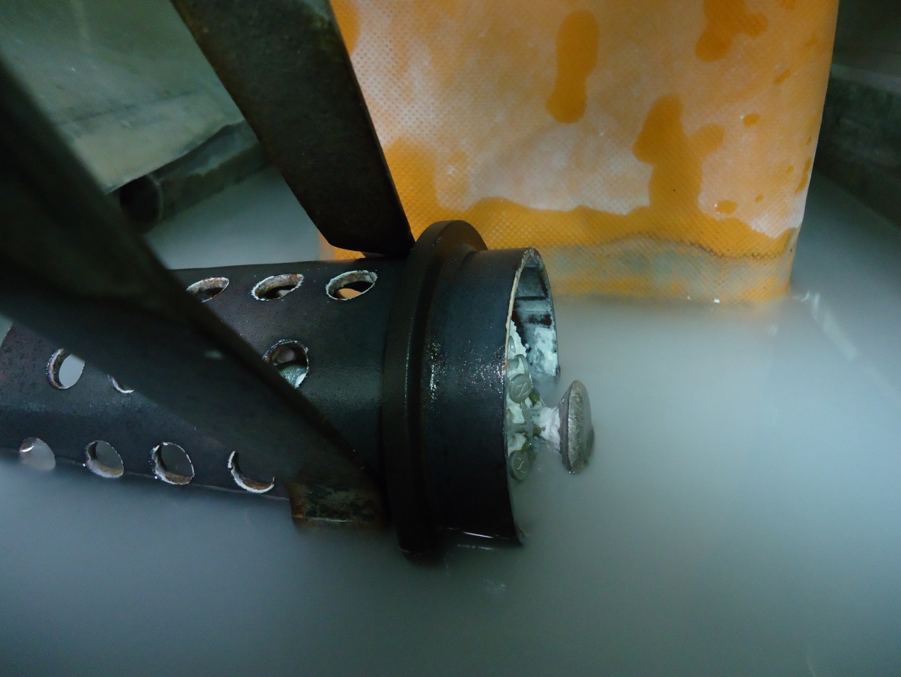 07.把以溶解成液態的金屬注入石膏管內部,等待液態金屬凝固